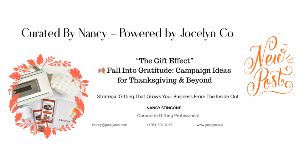 The Gratitude Loop: Add a thoughtful note or reflection prompt to your November gifts. Invite your clients to pause, reflect, and share what they’re grateful for. It’s not just a gift—it’s a moment.